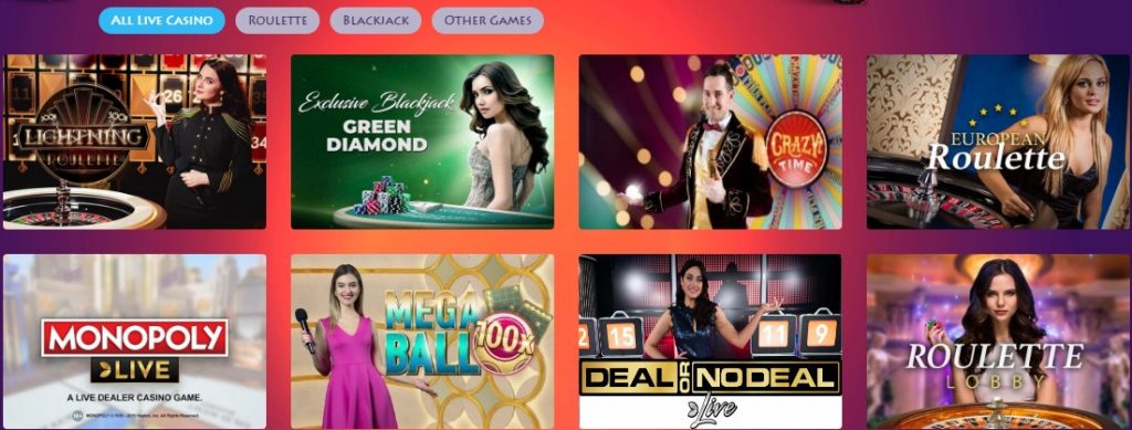 O site tem os melhores gráficos e layout. Abaixo do logotipo, na barra lateral esquerda, há menu de hambúrguer, promoções, jogos e menu de pesquisa. Enquanto as seções do menu de hambúrguer, menu, suporte, cassino ao vivo, promoções, VIP e métodos de pagamento. Se você não tem certeza de ingressar no cassino, por que participar e sobre seções no menu Hamburger pode fornecer todos os motivos para se juntar a ele.