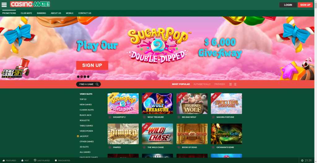 No Cassino-companheiro Casino, os jogadores podem sentar e desfrutar de acesso a mais de 400 Jogos em uma ampla gama de categorias de jogos. Essas categorias incluem jogos de mesa (Blackjack, roleta, Baccarat, Craps, etc.), videooker, cartões instantâneos de vitórias, jogos de arcade, Pokies clássicos de 3-Reel e 3D Slots. Nota: O site não oferece jogos ao vivo de cassino.