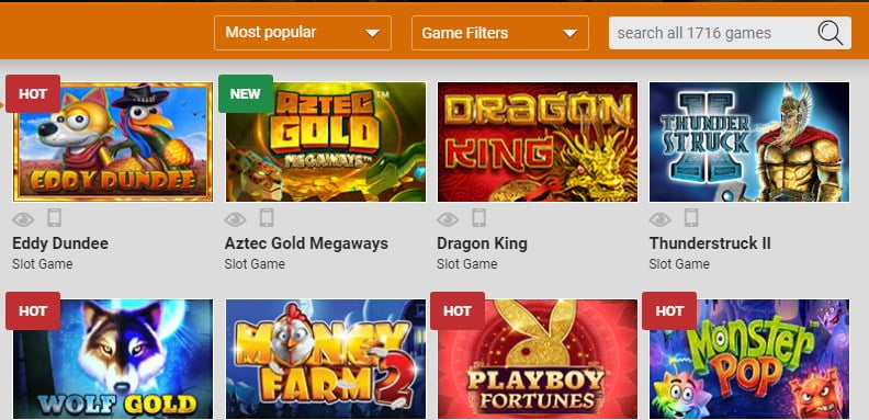 Você pode ver os jogos mais populares na ordem A-Z ou Z-A, como quiser. O cassino também permite que você adicione filtros para restringir seus resultados de pesquisa. Além disso, você também pode pesquisar nos jogos com seus nomes da lista de mais de 1700 jogos.