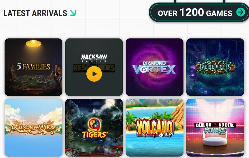 Você pode ver o botão de bate-papo ao vivo na parte inferior esquerda da tela. Ao rolar para baixo, você verá os métodos de pagamento abaixo do banner. O site também exibe as chegadas mais recentes dos jogos e você também recebe um link clicável para mais de 1200 jogos.