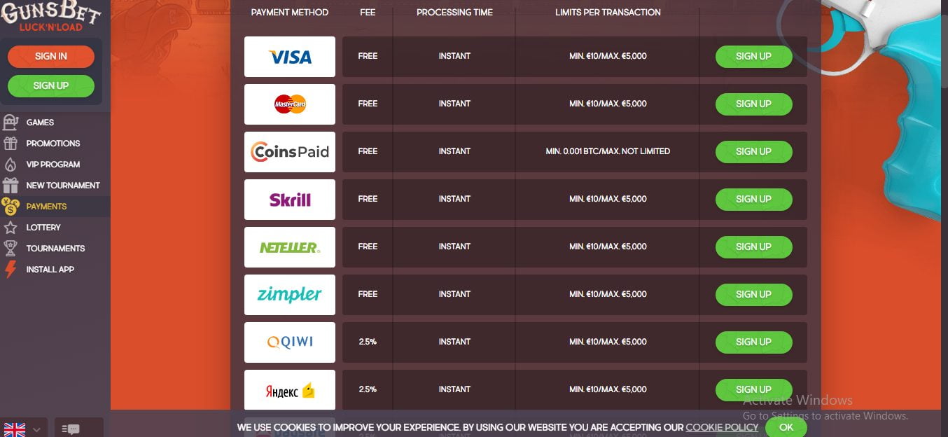 O site é licenciado e regulamentado pela Autoridade de Curaçao e é um local seguro para jogar. Você pode ter certeza da segurança do seu dinheiro enquanto faz transações. Os jogos são fornecidos pelos principais desenvolvedores, como microgaming e netent. O site protege todos os dados do usuário e do jogo do alcance dos cibercriminosos. Os hóspedes podem se beneficiar dos vários bônus e promoções lançados pelo Gunsbet regularmente.