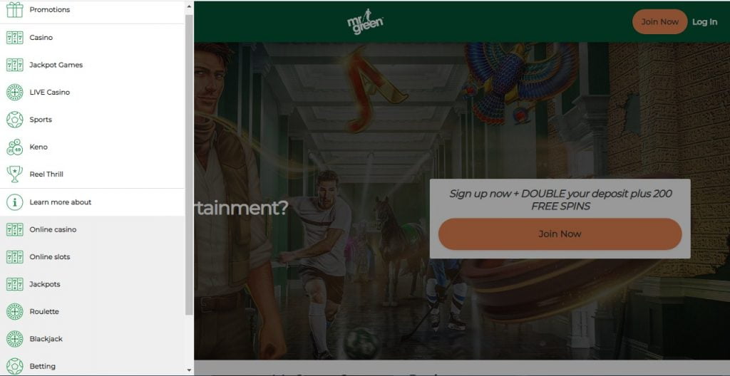 Este é um cassino que tem uma aparência diferente e muito nova. Ele fornece muito conteúdo importante na página inicial. O mascote é adequado para o nome como seu Senhor Verde ele mesmo. Os cenários verdes nas áreas que chamam a atenção correspondem ao nome da marca. Seu layout exclusivo é fácil de usar e possui um menu suspenso da barra lateral que fornece tudo o que os jogadores desejam.