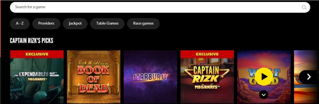 Eles têm alguns jogos únicos como Wheel of Rizk